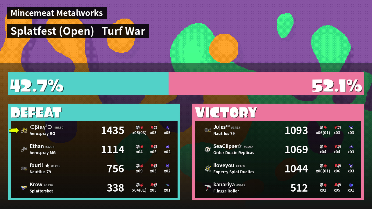 | Mode | Turf War - Splatfest (Open) | ||