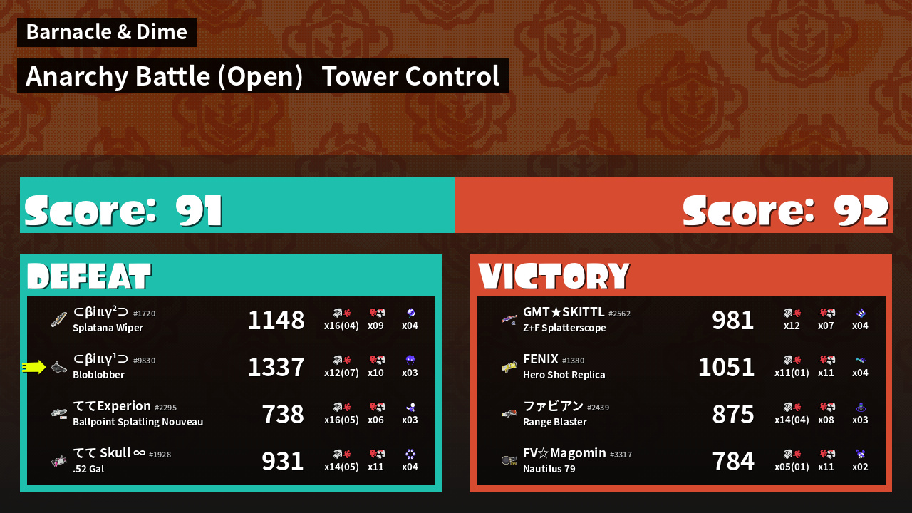 | Mode | Tower Control - Anarchy Battle (Open) | ||