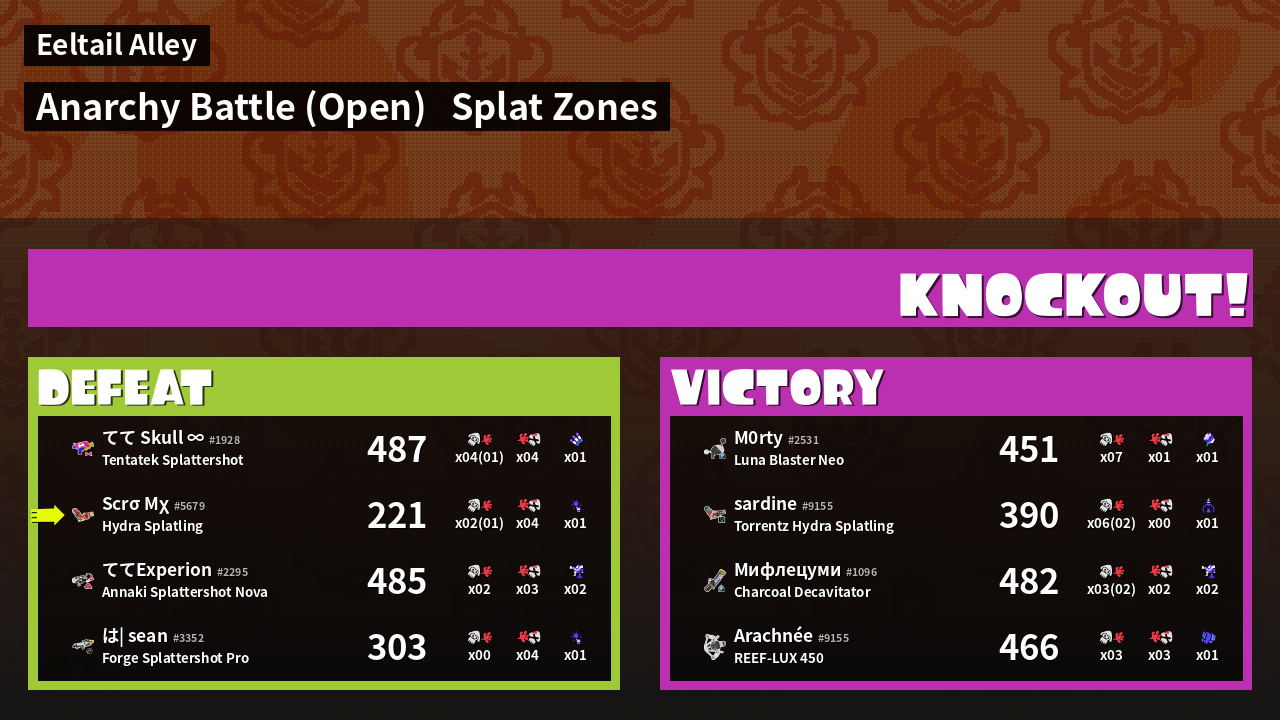 | Mode | Splat Zones - Anarchy Battle (Open) |