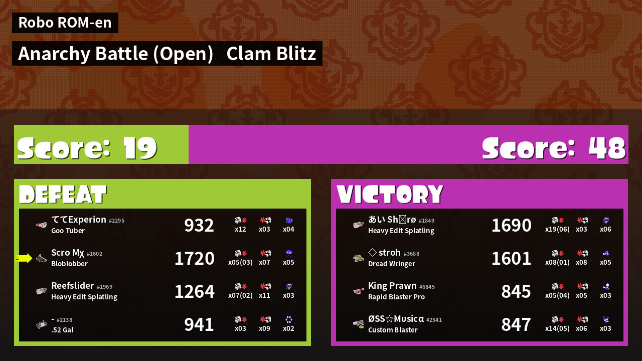 | Mode | Clam Blitz - Anarchy Battle (Open) |