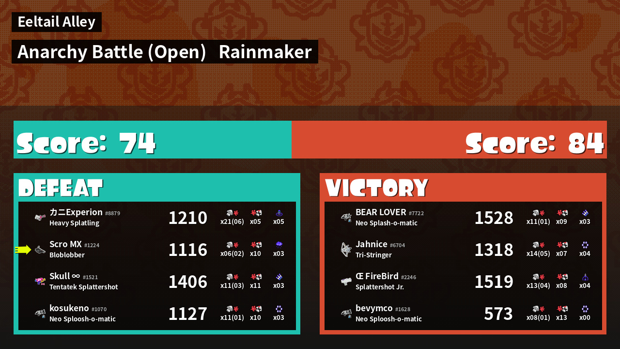| Mode | Rainmaker - Anarchy Battle (Open) | ||