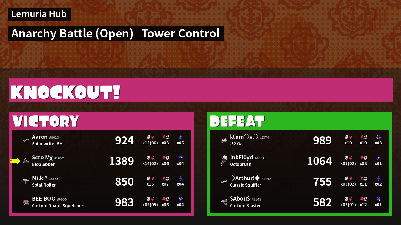 | Mode | Tower Control - Anarchy Battle (Open) |