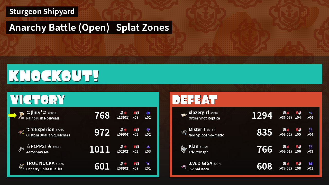 | Medals | #1 Overall Splatter #1 Splat Zone Guard #1 Enemy Splatter | ||