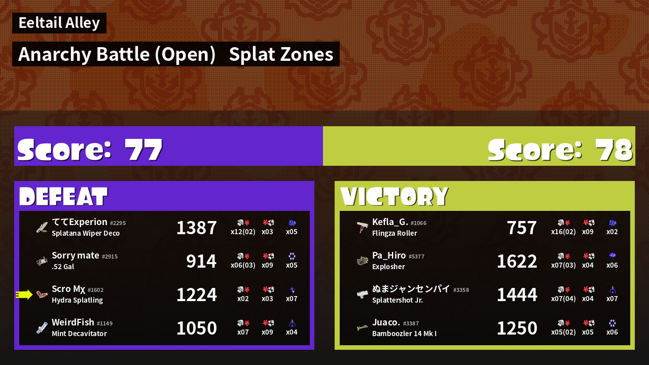 | Mode | Splat Zones - Anarchy Battle (Open) |