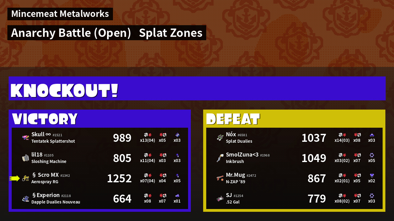 | Mode | Splat Zones - Anarchy Battle (Open) | ||