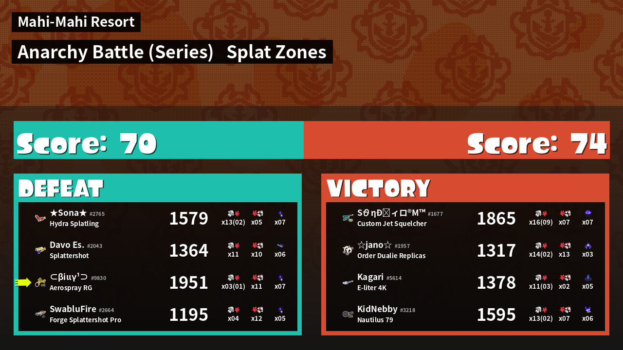 | Mode | Splat Zones - Anarchy Battle (Series) | ||