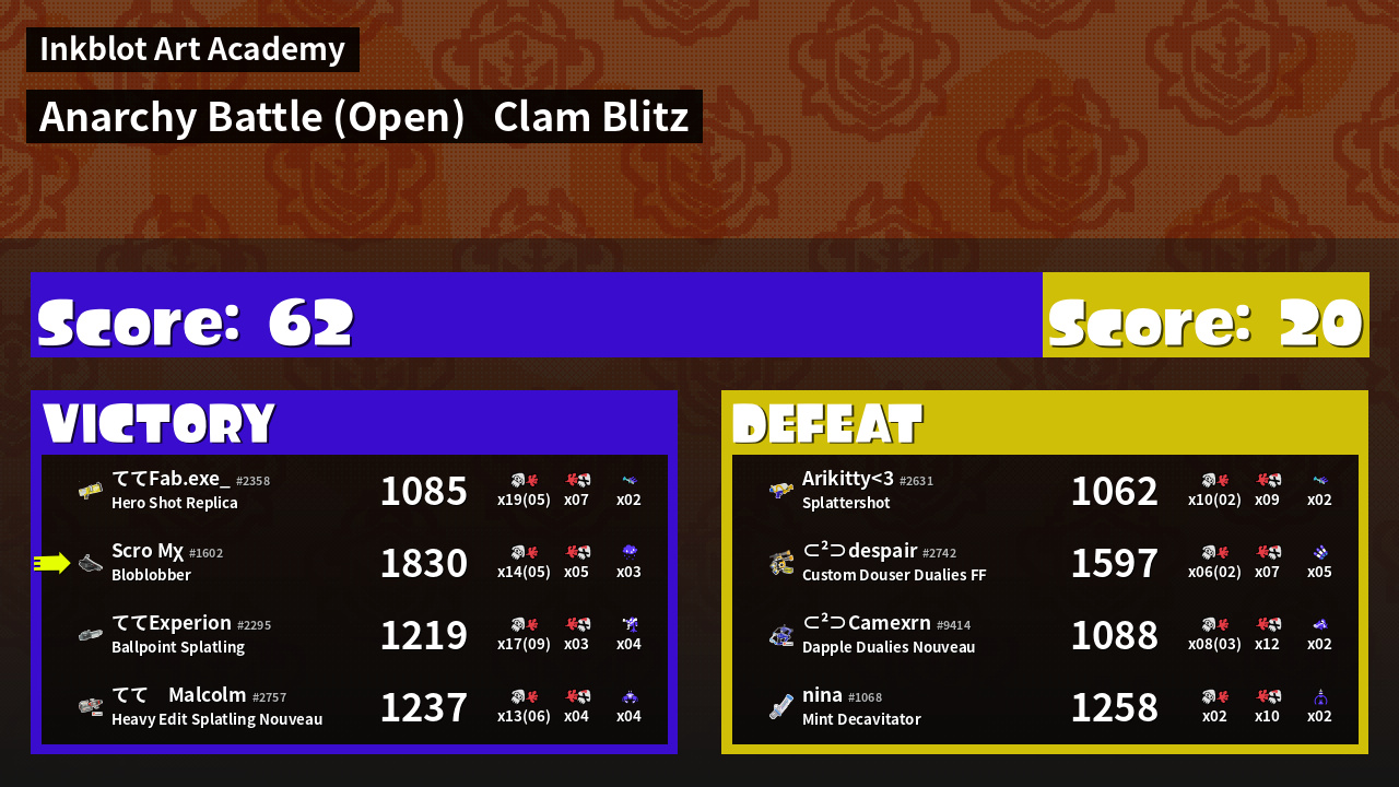| Mode | Clam Blitz - Anarchy Battle (Open) |