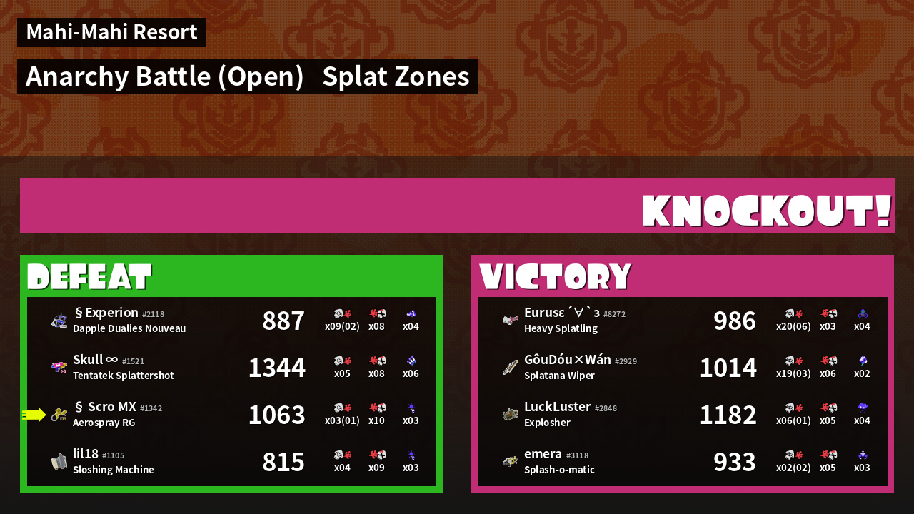 | Mode | Splat Zones - Anarchy Battle (Open) | ||