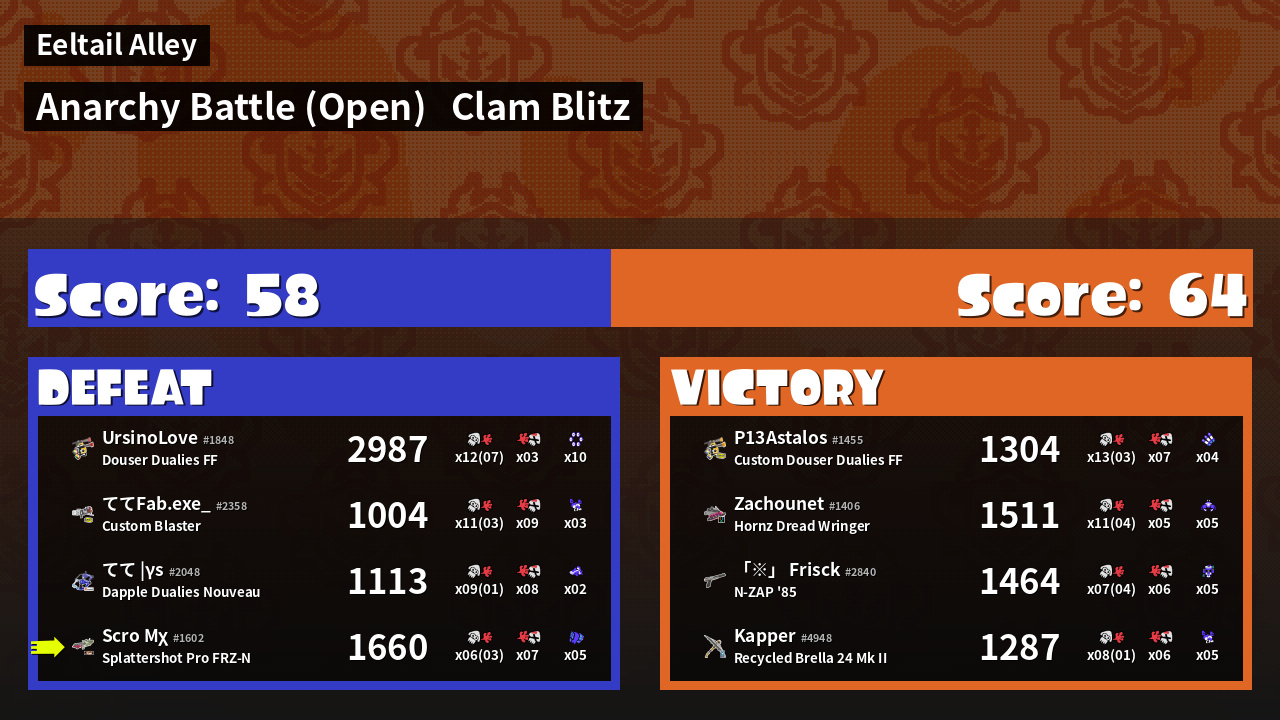 | Mode | Clam Blitz - Anarchy Battle (Open) |
