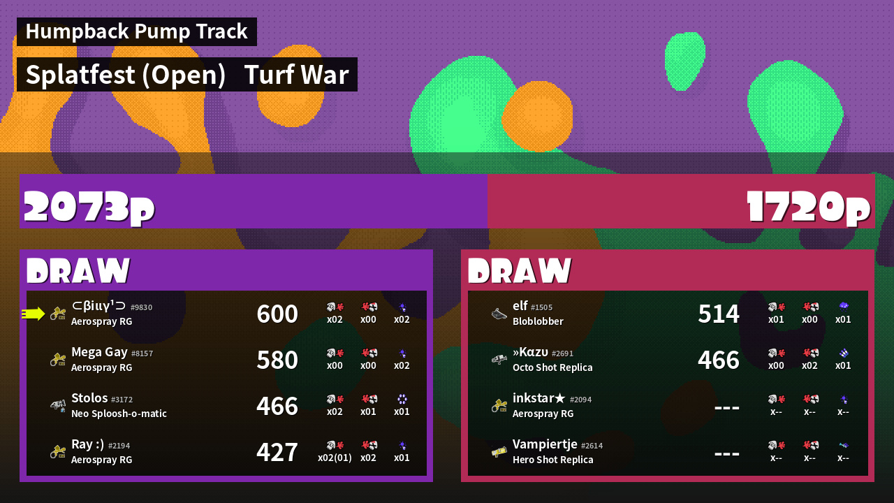 | Mode | Turf War - Splatfest (Open) | ||