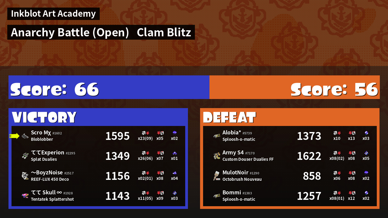 | Mode | Clam Blitz - Anarchy Battle (Open) |