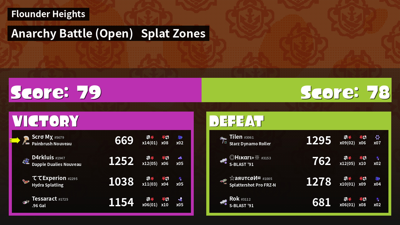 | Mode | Splat Zones - Anarchy Battle (Open) | ||