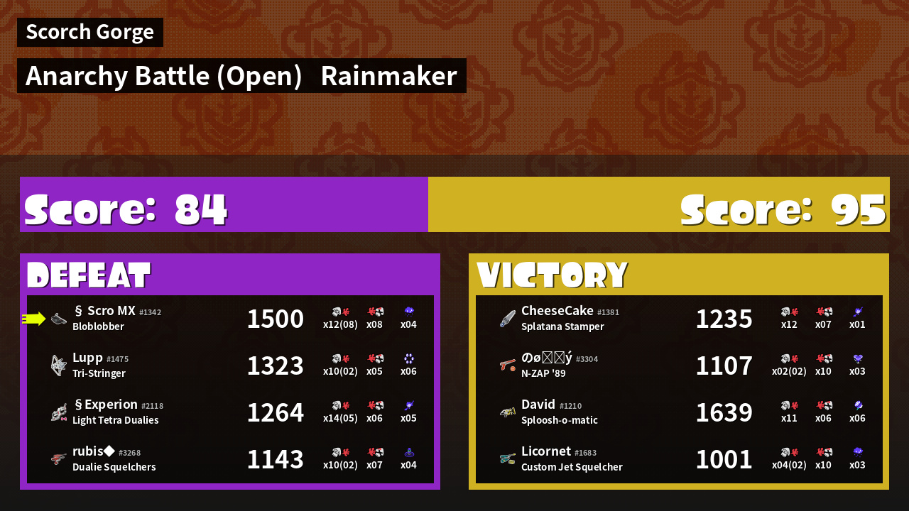 | Mode | Rainmaker - Anarchy Battle (Open) | ||