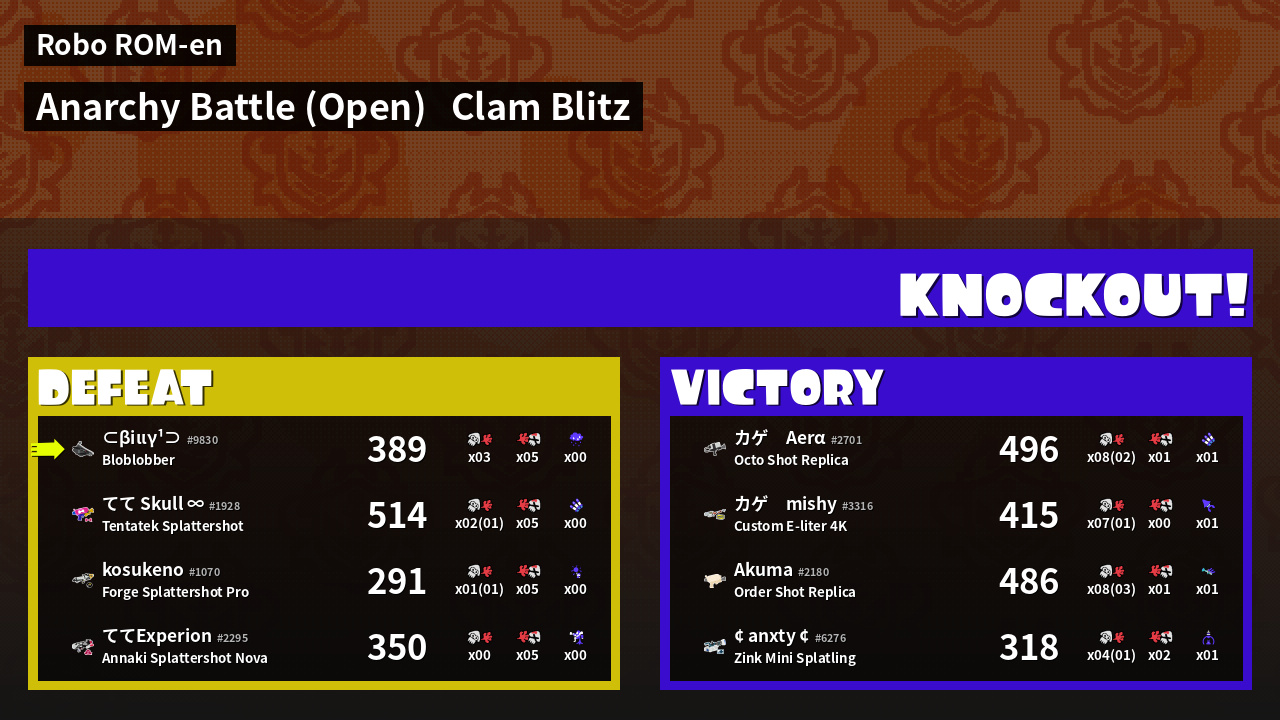 | Mode | Clam Blitz - Anarchy Battle (Open) | ||