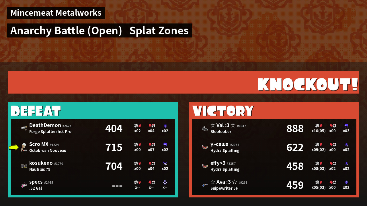 | Mode | Splat Zones - Anarchy Battle (Open) | ||