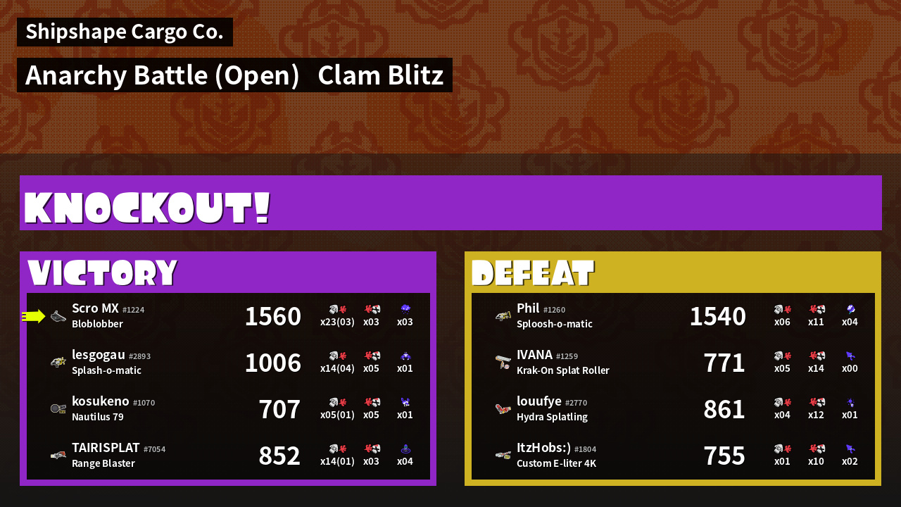 | Mode | Clam Blitz - Anarchy Battle (Open) | ||