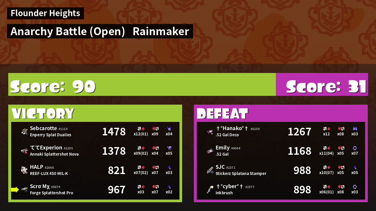 | Mode | Rainmaker - Anarchy Battle (Open) |