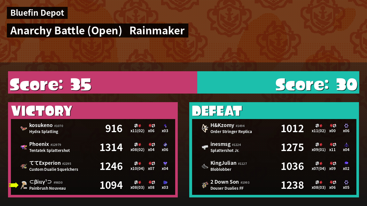 | Mode | Rainmaker - Anarchy Battle (Open) | ||