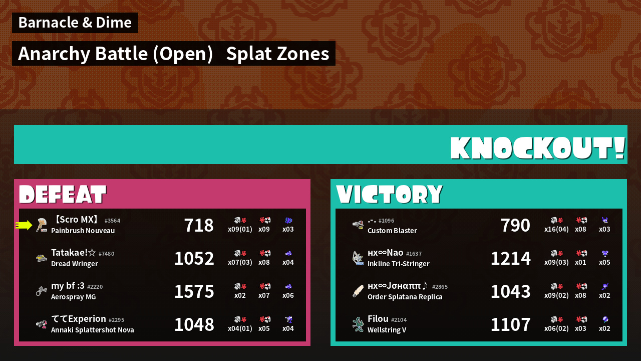 | Mode | Splat Zones - Anarchy Battle (Open) | ||