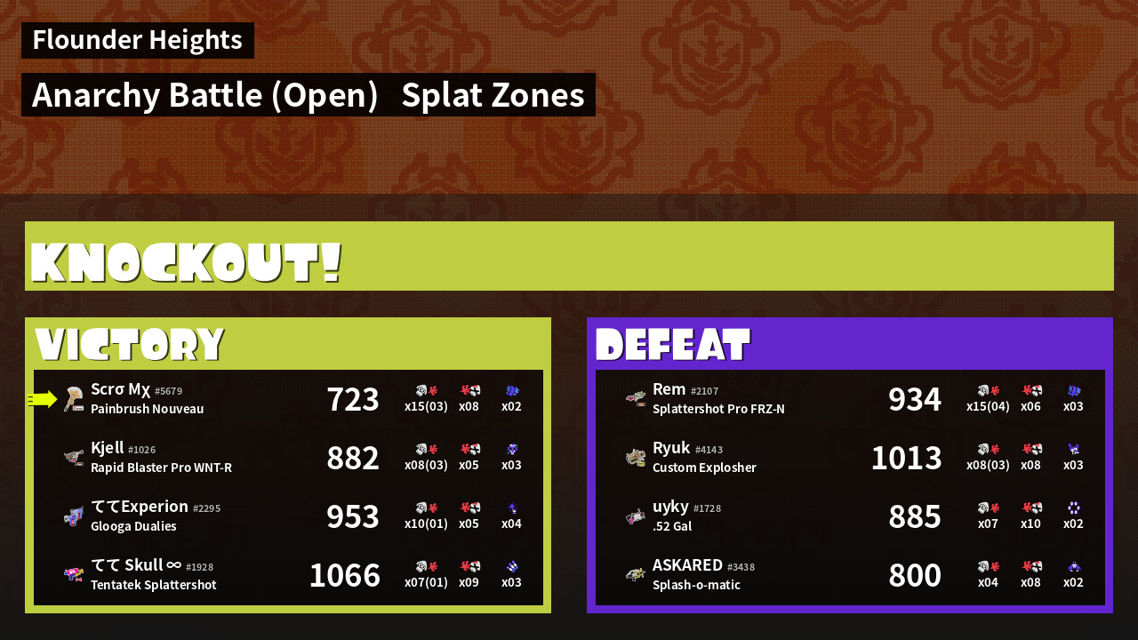 | Mode | Splat Zones - Anarchy Battle (Open) |