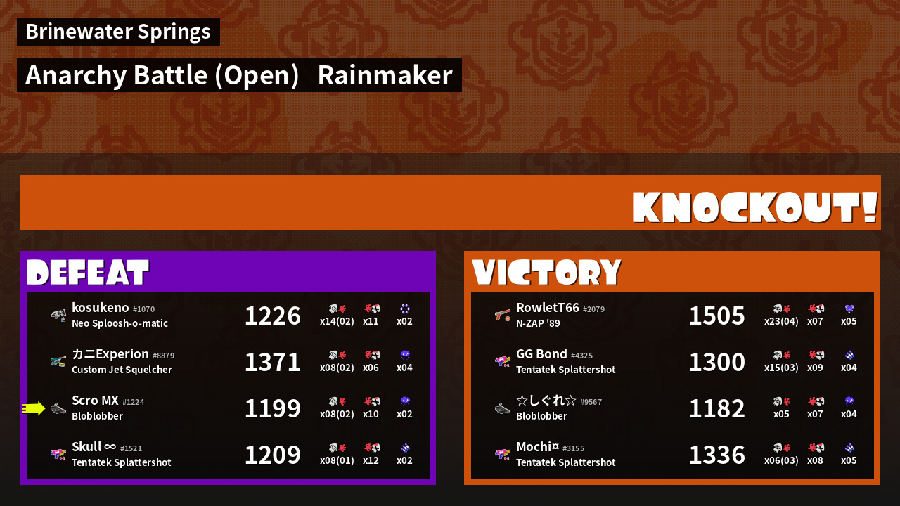 | Medals | #1 Super Jump Spot #1 Splat Assister #2 Overall Splatter | ||