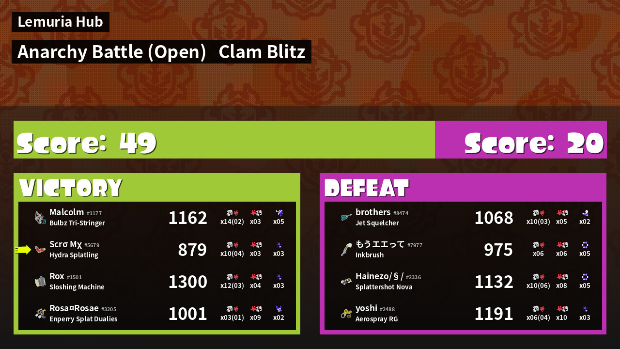 | Mode | Clam Blitz - Anarchy Battle (Open) |