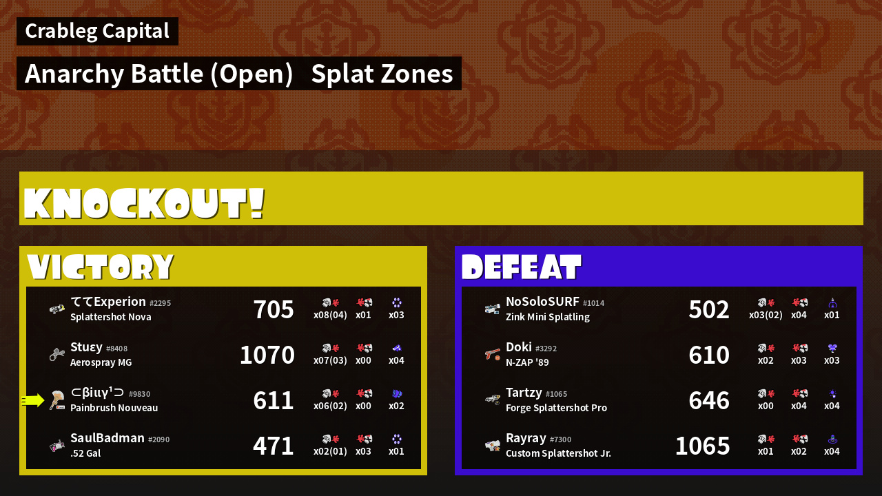 | Medals | #1 Enemy Splatter #1 Splat Zone Hero #1 Damage Taker | ||