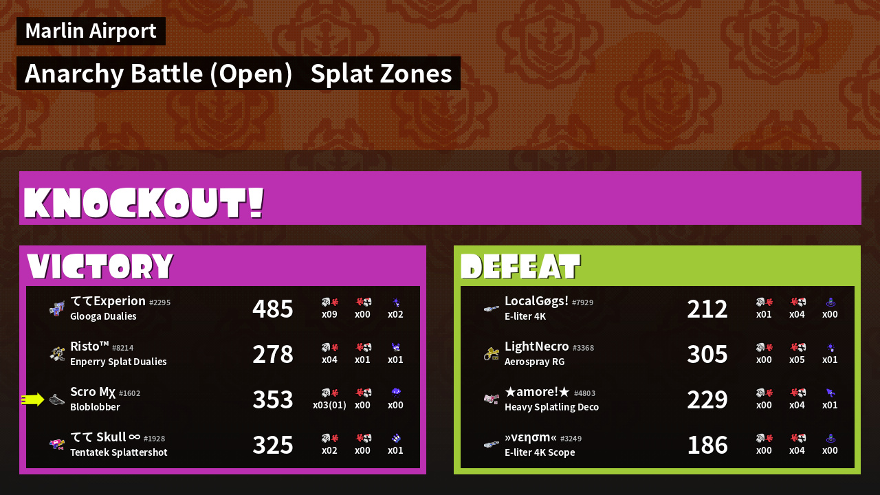 | Mode | Splat Zones - Anarchy Battle (Open) |
