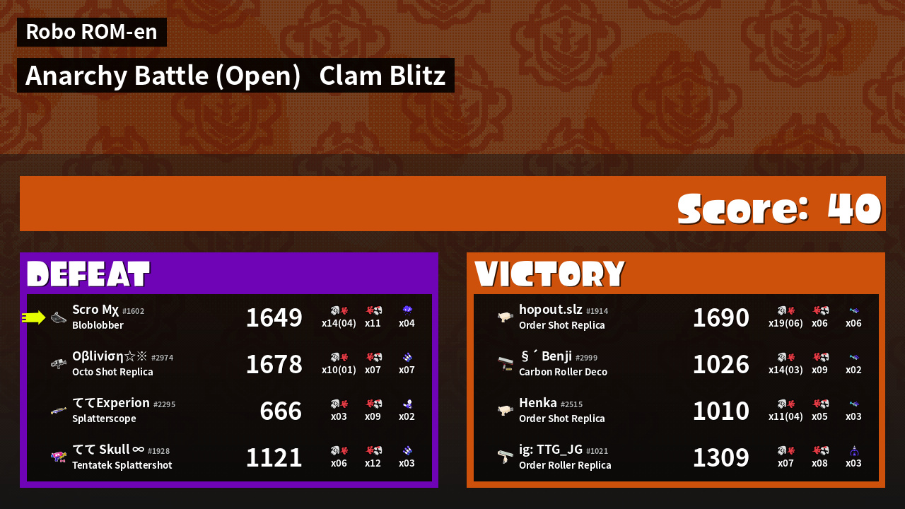 | Mode | Clam Blitz - Anarchy Battle (Open) |