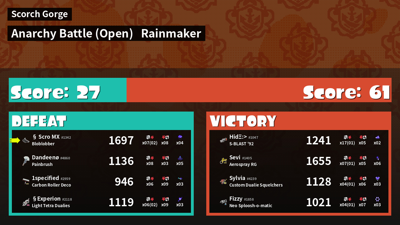 | Mode | Rainmaker - Anarchy Battle (Open) | ||