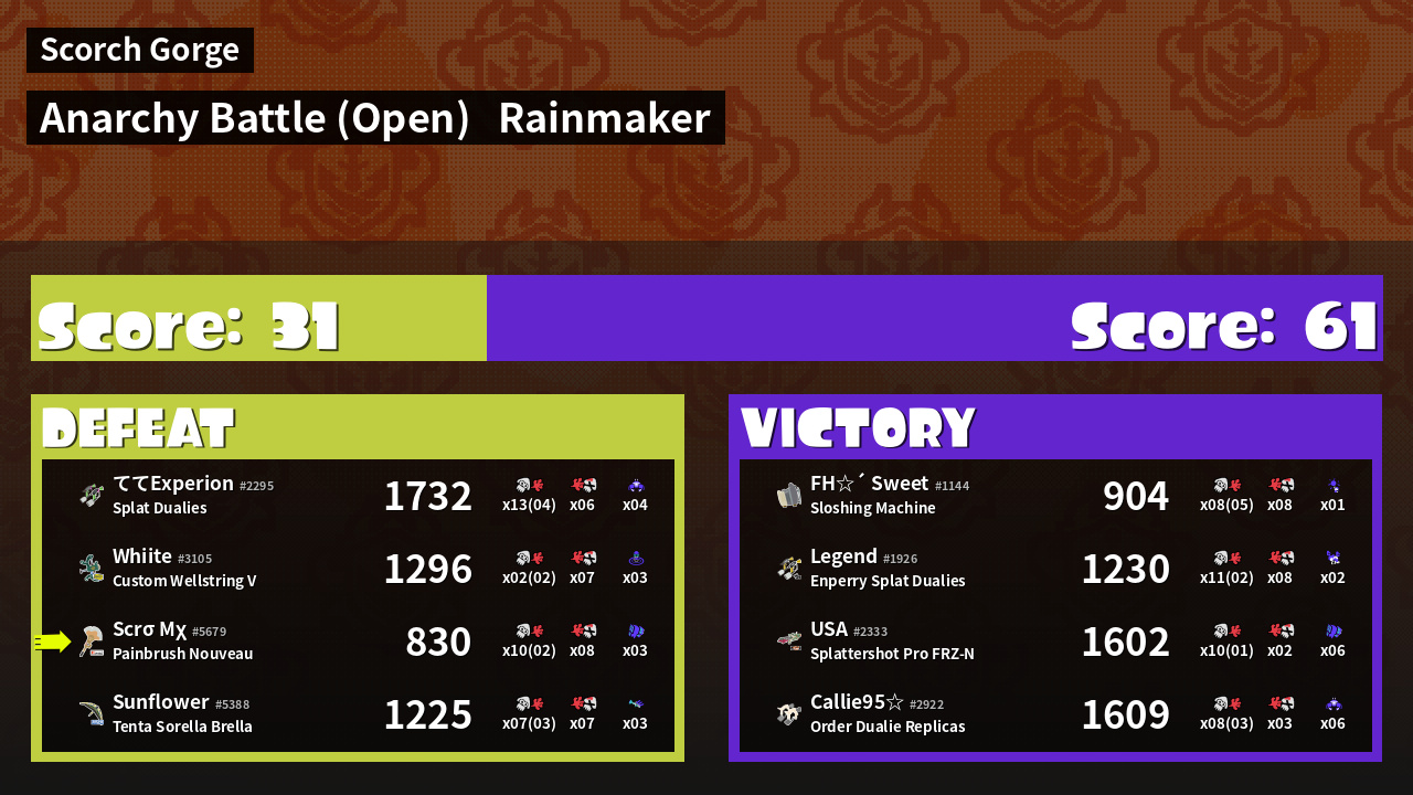 | Mode | Rainmaker - Anarchy Battle (Open) |