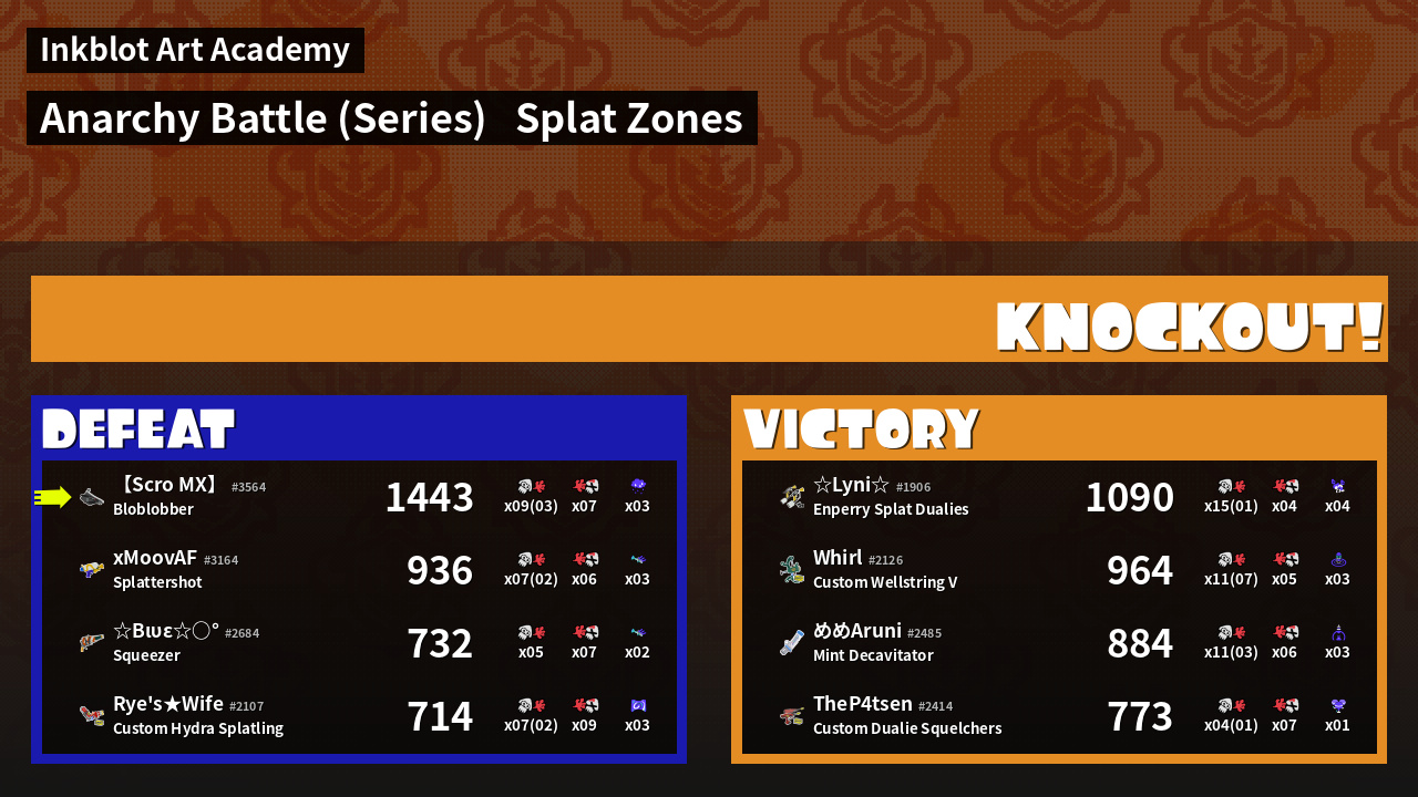 | Medals | #1 Overall Splatter #1 Splat Zone Inker #1 Turf Inker | ||