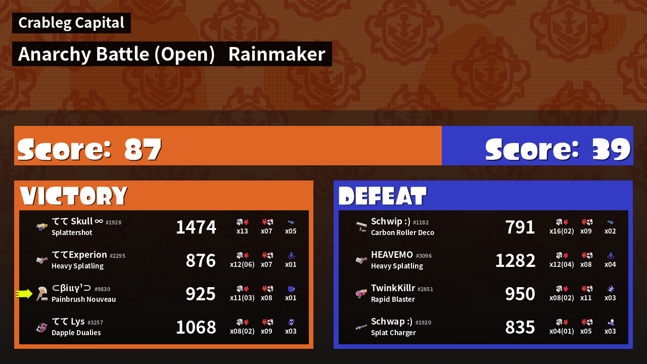 | Mode | Rainmaker - Anarchy Battle (Open) | ||