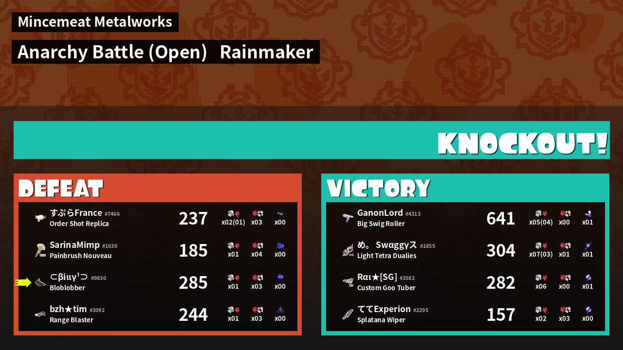 | Mode | Rainmaker - Anarchy Battle (Open) | ||
