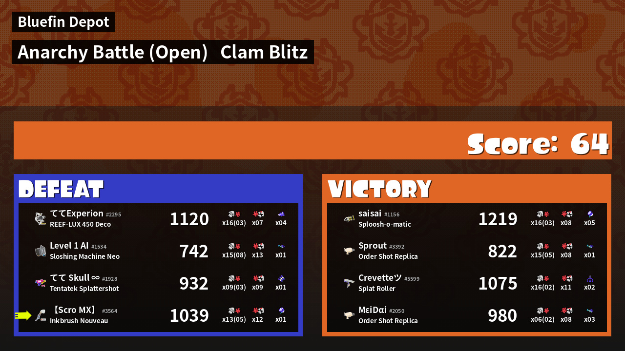 | Mode | Clam Blitz - Anarchy Battle (Open) | ||