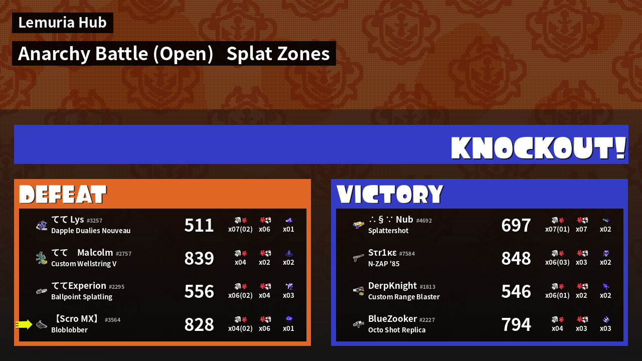 | Mode | Splat Zones - Anarchy Battle (Open) | ||