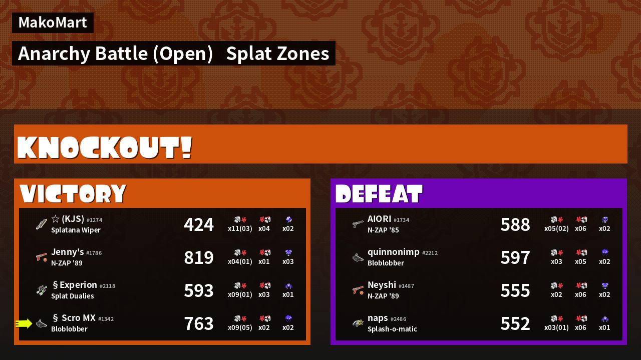 | Mode | Splat Zones - Anarchy Battle (Open) | ||