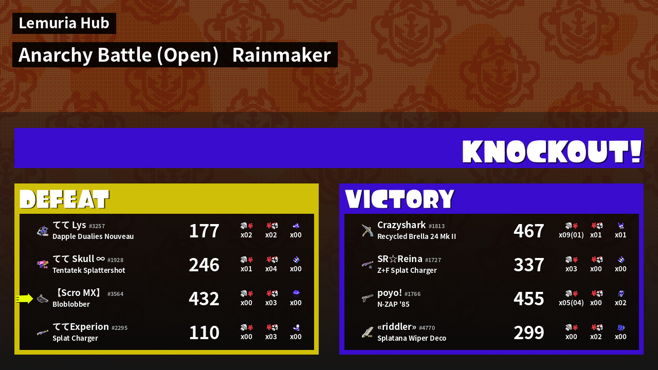 | Mode | Rainmaker - Anarchy Battle (Open) | ||