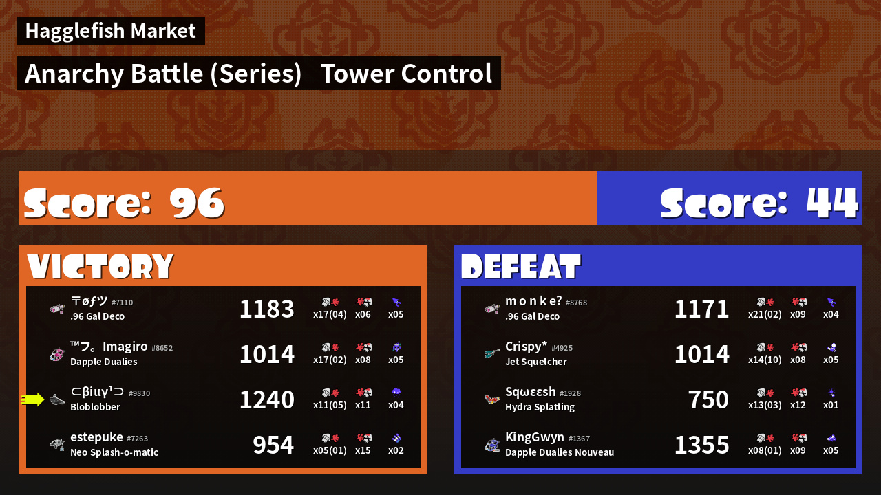 | Medals | #1 Score Booster #1 Turf Inker #1 Splat Assister | ||