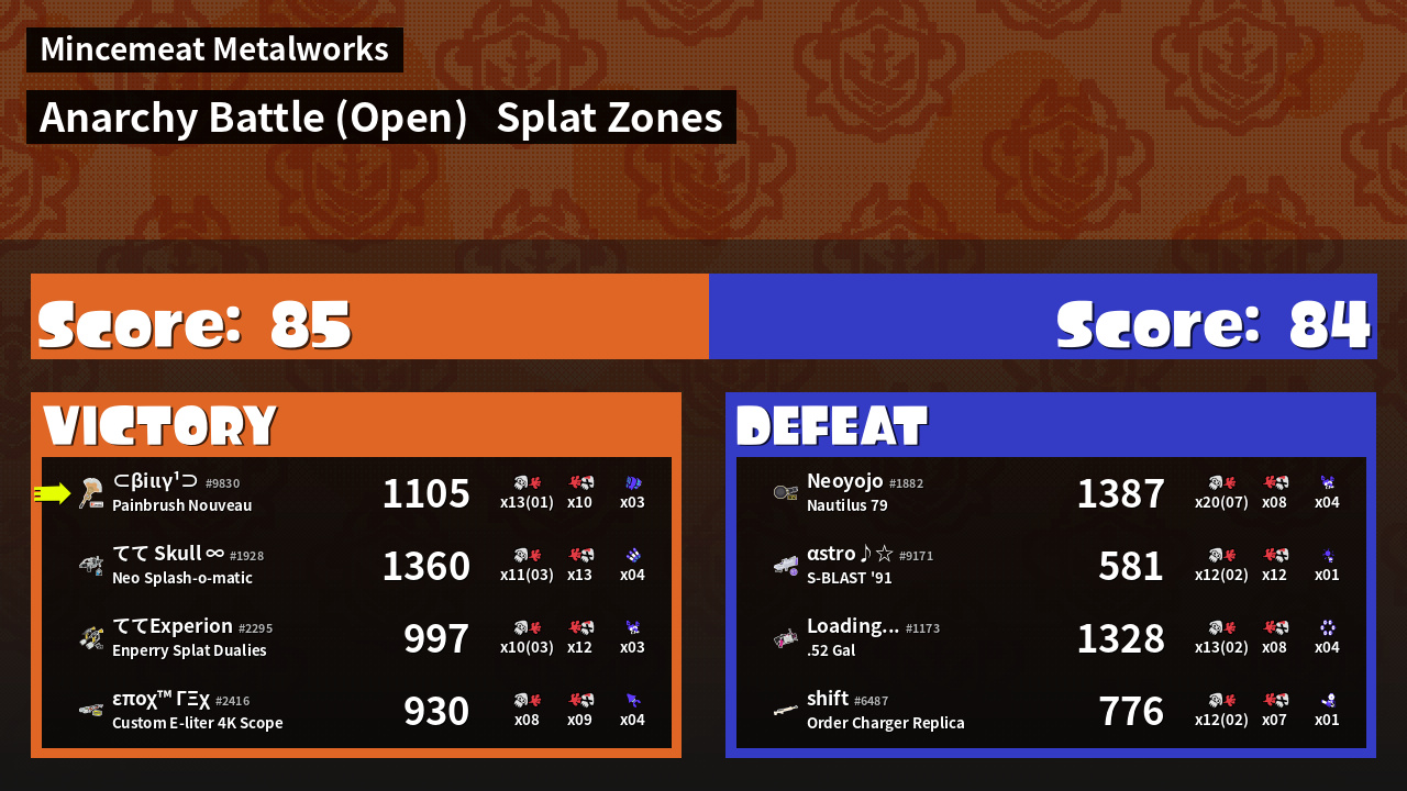 | Mode | Splat Zones - Anarchy Battle (Open) | ||
