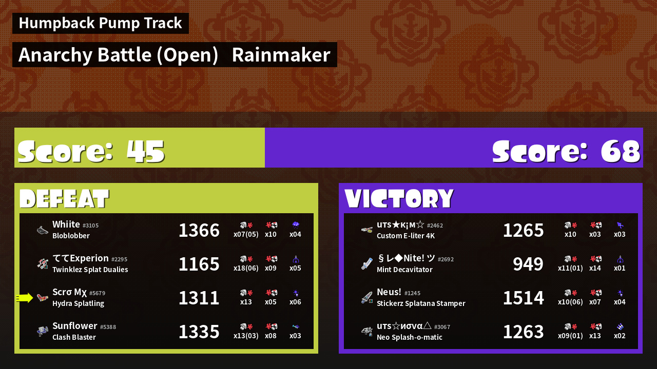 | Mode | Rainmaker - Anarchy Battle (Open) |