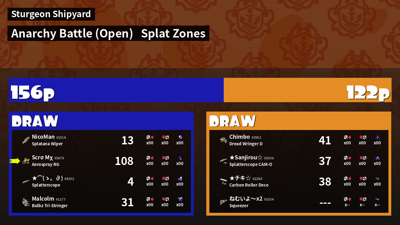 | Mode | Splat Zones - Anarchy Battle (Open) |