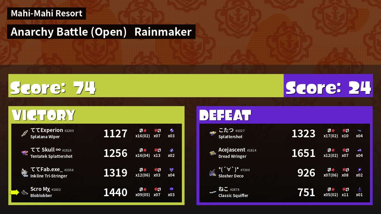 | Mode | Rainmaker - Anarchy Battle (Open) |