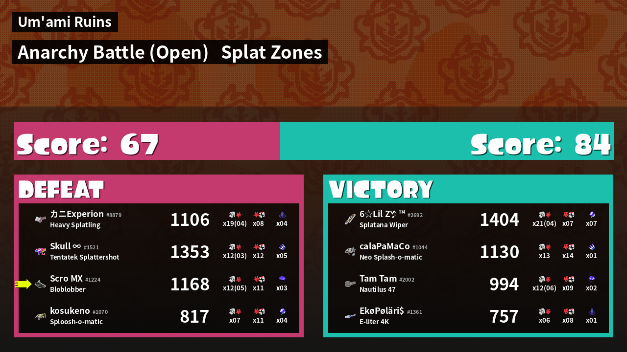 | Mode | Splat Zones - Anarchy Battle (Open) | ||