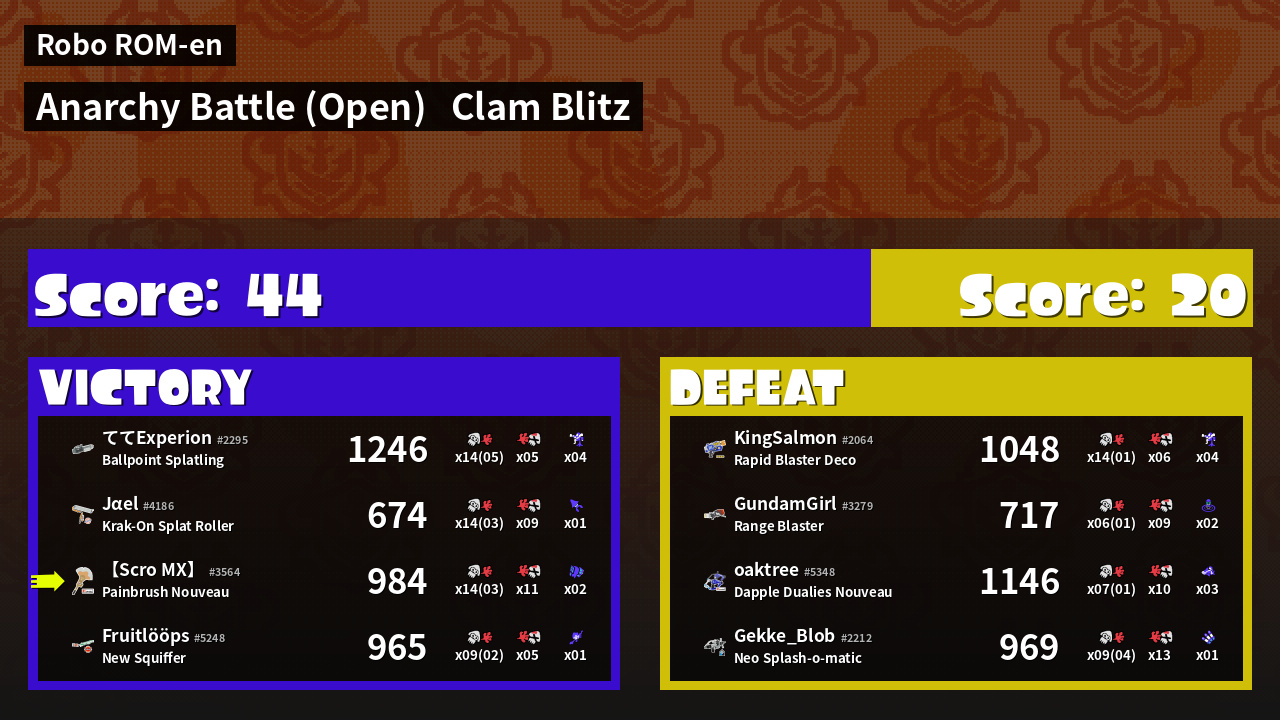 | Mode | Clam Blitz - Anarchy Battle (Open) | ||