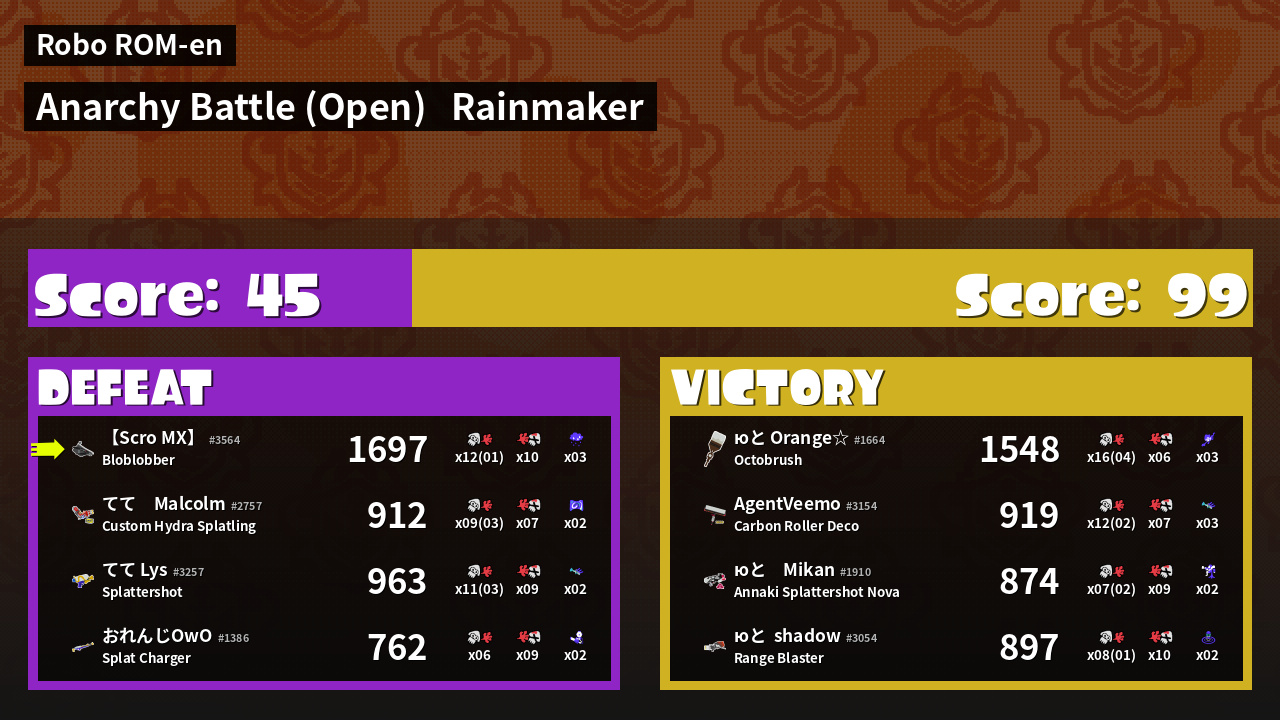 | Mode | Rainmaker - Anarchy Battle (Open) | ||