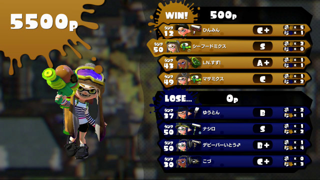 | Special Save | 60.0 % loss (Wasabi Splattershot) | |||||||||||||||||||||||||||||||||||||||||||||||||||||||||||||