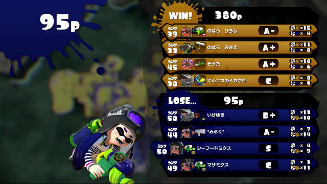 | Tentatek Splattershot | 39 | A- | 15 / 4 > | 3.75 | 78.9% | |