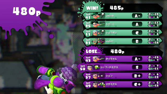 | Splat Charger | 25 | A | 11 / 7 > | 1.57 | 61.1% | |