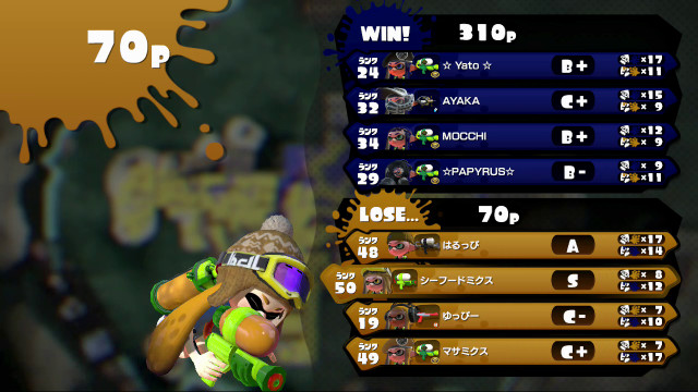 | Wasabi Splattershot | 24 | B+ | 17 / 11 > | 1.55 | 60.7% | |